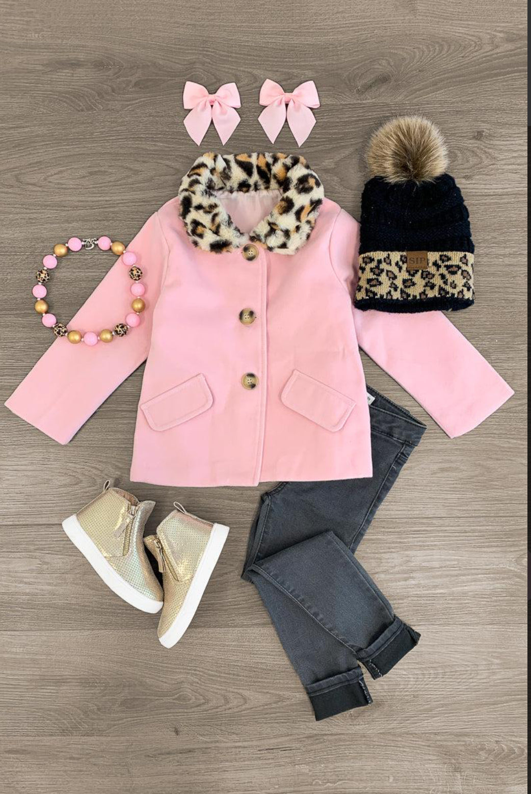 Your gal will love the comfort and cool style this Pink Cheetah Fur Button Up Coat brings to her Fall wardrobe. Made from soft breathable fabric, this girls' coat feels cozy against her skin, while the faux fur collar and long sleeves offer her a cozy fit.