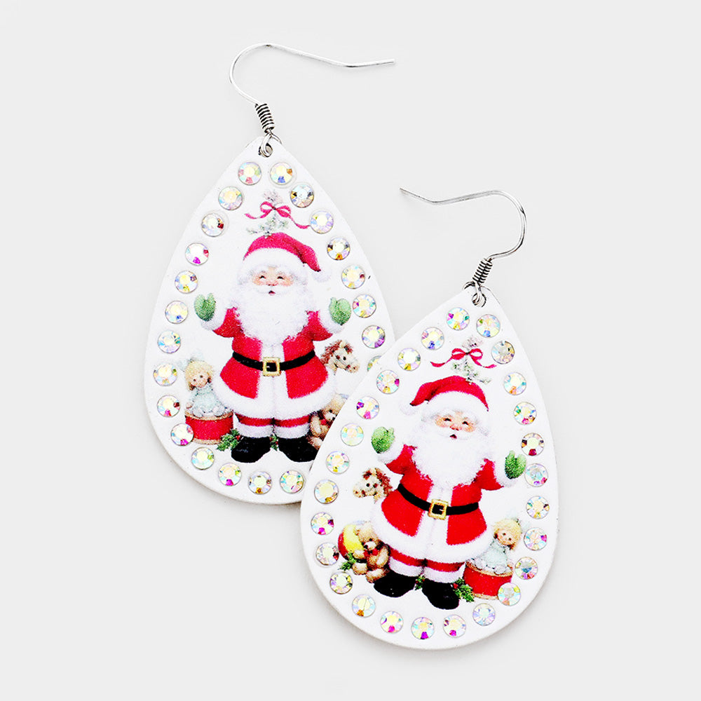 Christmas Santa Claus Teardrop Metal Dangle Earring